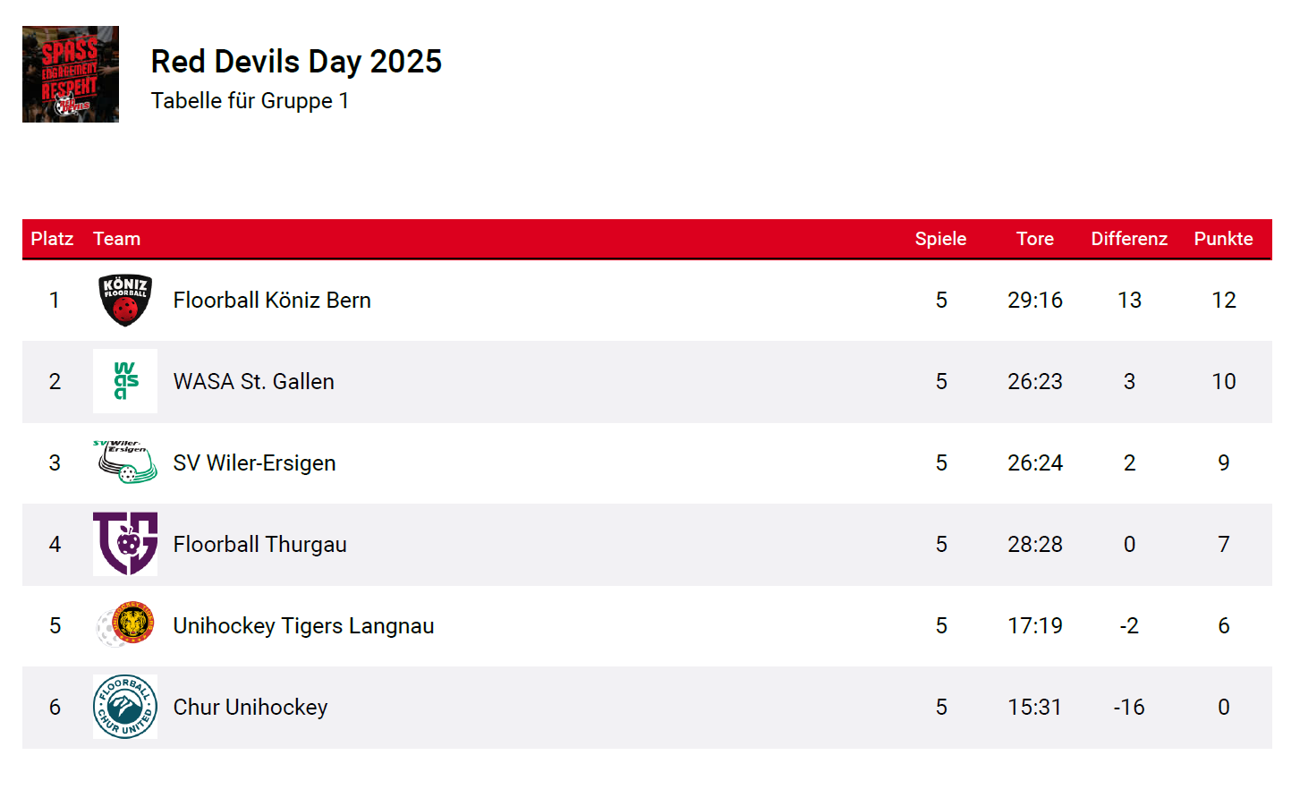 Gespielt wurde in der Mehrzweckhalle in Altendorf auf drei Spielfeldern gleichzeitig. Im Eingangsbereich gab es derweil unter fachkundiger Beratung der Vertreter von unihoc und unihockeyshop die Gelegenheit, die Artikel der Red Devils Clubkollektion an- und Unihockeystöcke auszuprobieren und zu bestellen. Im hinteren Teil der Zuschauertribüne konnten die leuchtend roten Trainingsshirts sowie ausgemusterte Teamwear bezogen werden. Und in der Caféteria waren alle durstigen und hungrigen Mäuler gut aufgehoben.